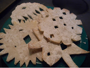 Coat the snowflakes with powered sugar. This part was a bit messy so I covered them on a cookie sheet. .