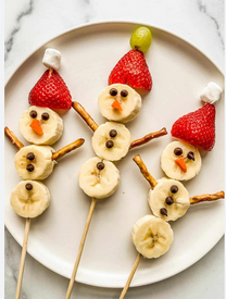✨ Depending on the day, I will skip the carrot nose to make the snack even easier to make. You can also use mini marshmallows instead of the grape for a cute little hat topper.