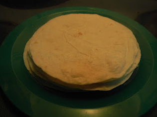 Start with 6 small tortillas. Heat them in the mircowave for 15 seconds to make them soft and easy to fold.